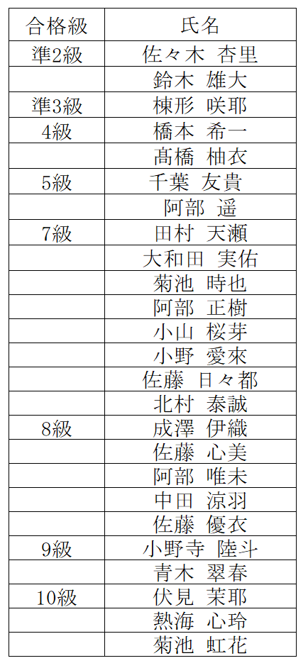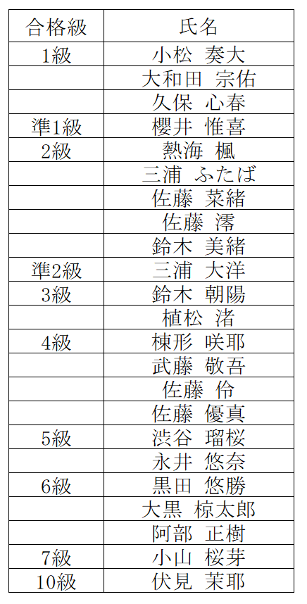 各種合格者一覧です。