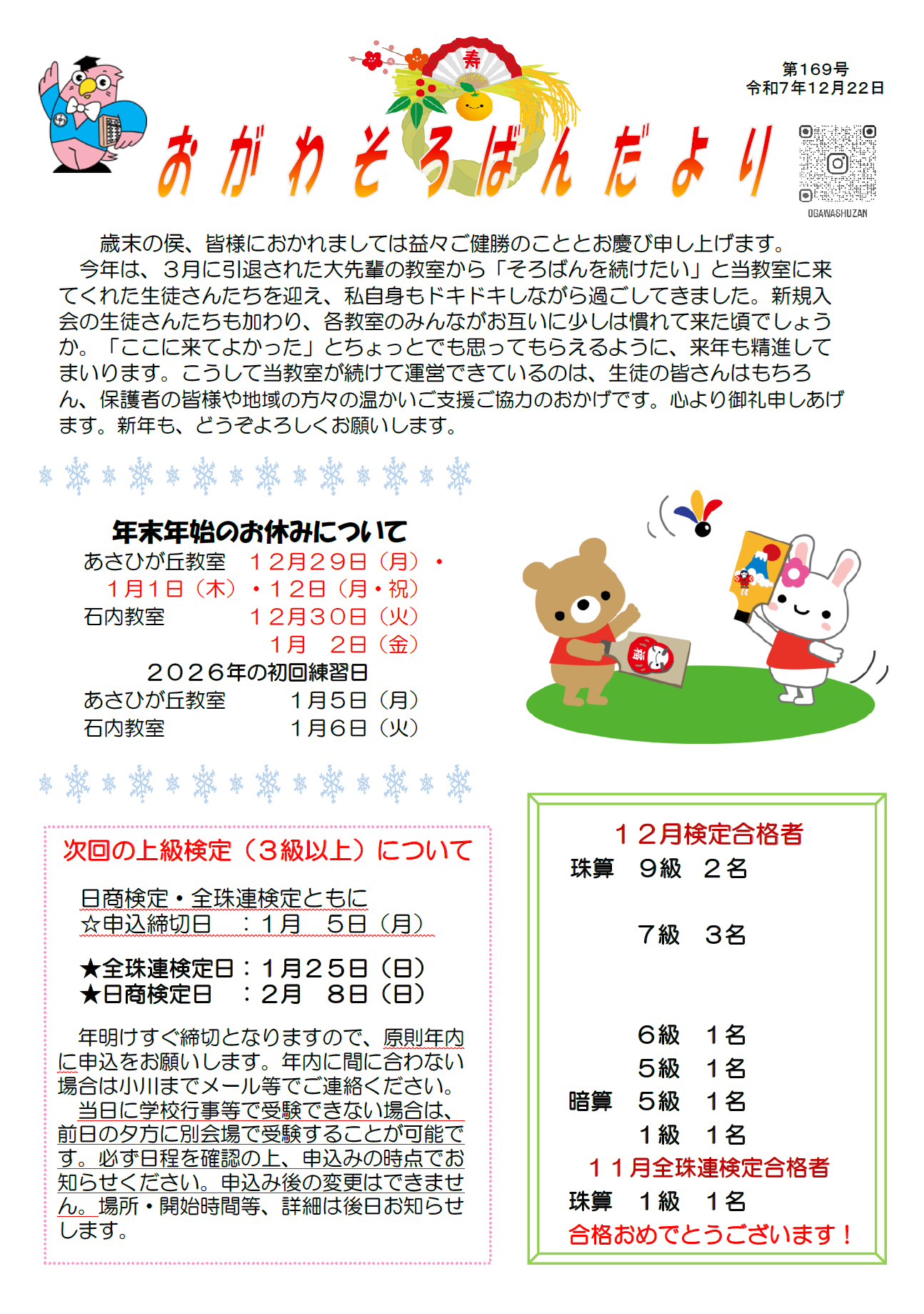 2026年1月(第169号)の教室だより